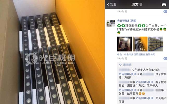個性、安全的LED洗墻燈包裝引來戶外亮化工程燈具廠家的一股熱潮,光臣照明不僅在產品的研發上下足功夫,就連包裝、運輸、安裝等方面都做出了非常細致的考慮和改良,與同行朋友分享這一研發成果時,大家都紛紛叫好。衍生出很多效仿光臣照明做法的廠家和包裝產品出來。這是一個時代的進步,光臣照明也愿意做這樣的一群領軍企業,希望在未來的城市建設當中,有著這一群不斷進步,不斷創新的高新企業!