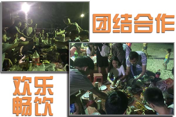 聽說海灘和燒烤更配哦!沒錯,是絕配!我們的晚餐是別出心裁的沙灘燒烤。在沙灘上燒烤給我們布置的任務是:“自己動手豐衣足食”。很明顯的看出來,大家都在分工合作完成屬于我們的美味晚餐。弱弱的說一句:小編是烤肉高手喔~