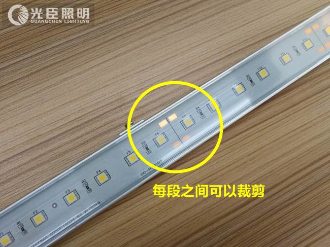 簡單地說,LED線條燈是由燈體外殼、含燈珠元器件的線路板、對接線及灌封膠水組成。這里我們的線條燈尺寸要根據線路板來決定,舉個例子:光臣照明LED線條燈48珠金黃光的,線路板可分為8段,每段6個燈珠,每段之間可以裁剪,短尺寸因此而來,再加上兩端對接線的卡扣尺寸及堵頭厚度,基本就是線條燈可以做的短尺寸了。