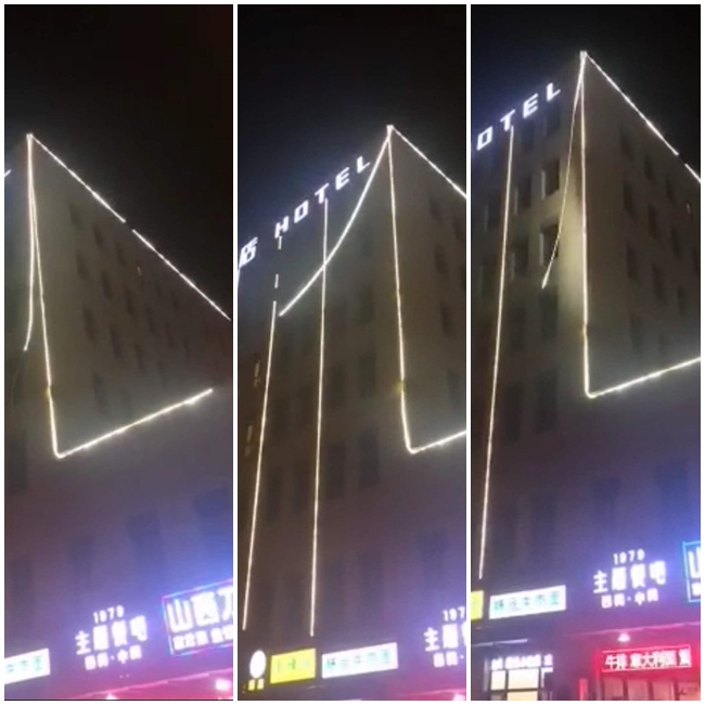 上圖中的LED燈帶在風中搖擺,要是高壓的話,后果不堪設想。