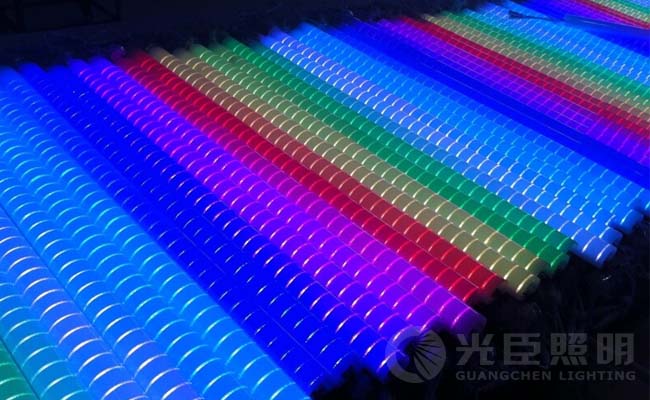 而數碼管常用于樓體、河道、廣告招牌亮化,它能根據用戶需要播放出單色及動畫效果。雷光管即便外觀與數碼管有幾分相似,但以它們的實際用途即能分辨出這兩款燈具是不屬于同類產品,雷光管更多的偏向于閃光燈之類的燈具。