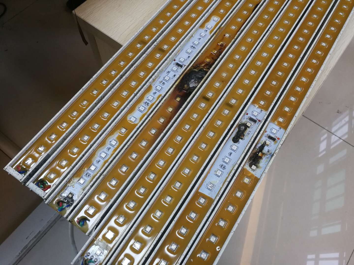 近期就有一個客戶寄回來一批燈具要維修,反饋說安裝完畢亮燈之后啪地一聲就燒糊了,經(jīng)檢查發(fā)現(xiàn)原來是有一個工人新入隊的不了解,沒看線路安裝圖,以為直接接電就可以,結(jié)果接了220V電直接導致燈具燒毀。