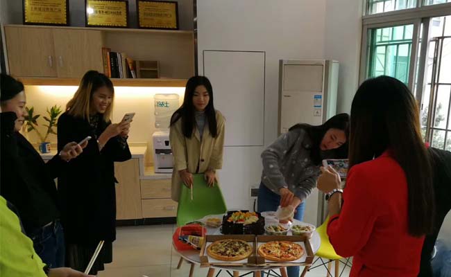 銷售部伙伴們在得知鄭經理生日時,大家悄悄的為這場簡單的祝福準備著,連女朋友都沒有的男同胞竟然主動說我去買花,希望我們鄭經理永遠美麗動人,每個人分工合作的準備著美食和禮物。瞬間覺得我們真是一個不折不扣團結友愛的大家庭。