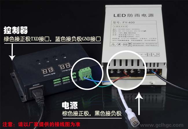 外控線條燈和單色線條燈的接線方式不同,外控方案需要連接控制器才能跑出預設的動畫效果,除DMX512需要五芯線以外,一般外控線條燈有四根線,兩條線接電源、另外兩條接控制器。而單色和內控線條燈只需接兩根線,因為不需要連接控制系統。
