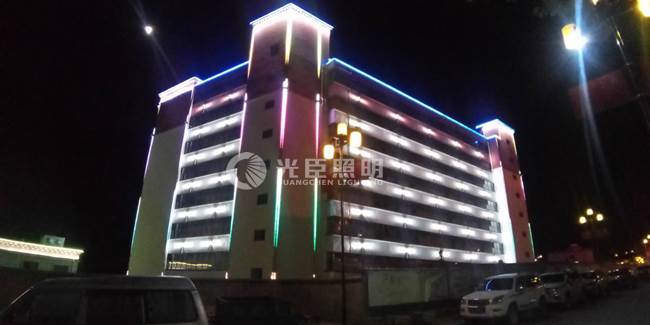 比如西藏地區樓房以白色紅邊為主,很少用金黃光色溫。近期項目是一個西藏地區的一個宿舍樓,白墻紅邊的墻身,所以在色溫選擇上用了白光及全彩。本次項目用了白光雙頭壁燈、白光洗墻燈以及全彩外控線條燈,完工亮燈效果符合設計圖紙,客戶驗收完成。
