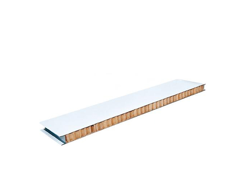 構成紙蜂窩夾芯彩鋼板是以彩色涂層為面板,以紙峰窩為芯材,用熱固化膠在連續成型機內加熱加壓復合而成的超輕建筑板材。產品自重輕、保溫隔斷性能好、隔聲效果好、施工速度快。